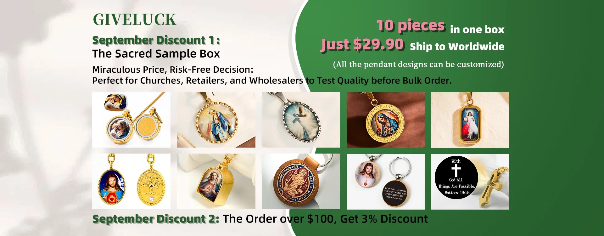 Gifeluck مخصصة عبر قلادة الكاثوليكية الدينية مع صورة الراتنج داخل هدية للمؤمنين بالجملة